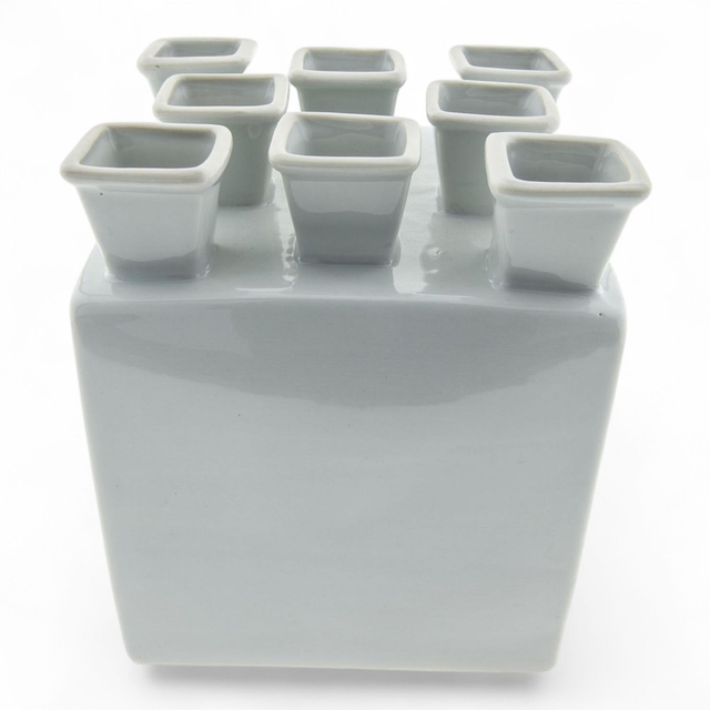 Vierkante tulpenvaas van Heinen Delfts Blauw met 8 openingen in de kleur wit.